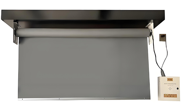 连接电源线和控制线,将澄城挡烟垂壁安装在支架上,并用螺丝固定。